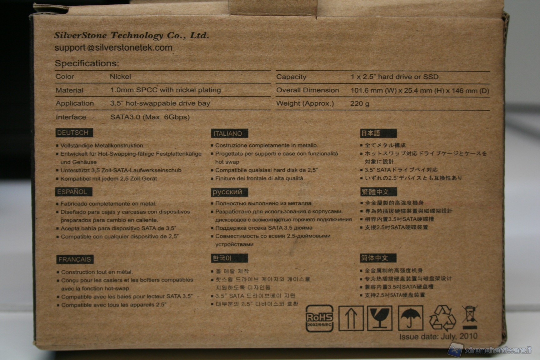 Il secondo accessorio,invece, è un comodissimo adattatore che vi permetterà di installare un disco da 2.5’’ nello spazio dedicato ad unità da 3.5’’, ovviamente hot-swap con connettori preinstallati. Questo significa che sarà compatibile con altri HDD cage con questa feature, facilitando di molto la procedura di installazione e rimozione. Alcune tra le sue caratteristiche :